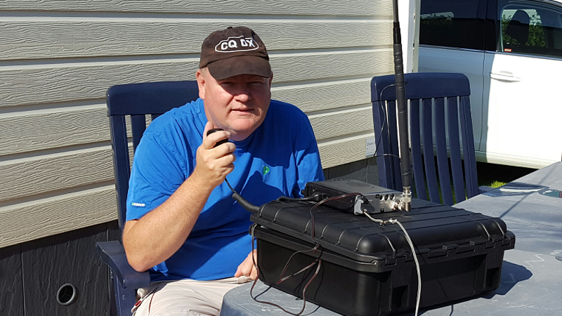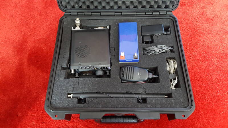 Ik vind het leuk om QRP verbindingen te maken met mijn Yaesu FT-817ND en MFJ-1899T portable antenne. Hieronder 2 foto's uit juli 2016, voor mijn chalet op de camping in Renesse, waar ik net een verbinding gemaakt heb met een Italiaans station op de 20 meter band. Het ging moeizaam met 2,5 watt, maar de voldoening is des te groter als het dan toch lukt. De binnenzijde van de koffer is met schuim helemaal op maat ingedeeld, waardoor de radio, extra accu, antenne, etc. veilig te vervoeren is om overal in no-time on air te kunnen zijn.
