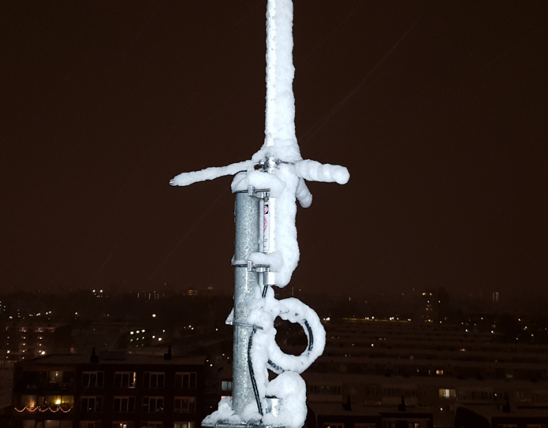 Helaas heb ik thuis niet de mogelijkheden om grote antennes of beams te kunnen plaatsen. Ik woon vrij hoog in een appartement en heb een balkon waar ik wel wat kan experimenteren. Voor de 2 meter en 70cm band staat er een Diamond X50 antenne en voor de 10 en 11 meter band staat de oude vertrouwde Antron99 er nog steeds. Voor de 20 en 40 meter band had ik ook een verticale spriet staan, een Diamond BB7V. Hiermee mooie verbindingen kunnen maken, maar helaas is deze kapot gegaan in een zware storm en heb ik de antenne verwijderd. Dat is ook wel weer een nadeel van hoog wonen, want het kan hier dan flink tekeer gaan. Ik heb nu wel een glasfibermast aan het balkonrek staan die ik uit kan schuiven en dan een EndFed draadantenne verticaal kan ophangen zodat ik af en toe, als er niet teveel wind staat, ook nog uit kan komen op mijn geliefde 20 meter band.